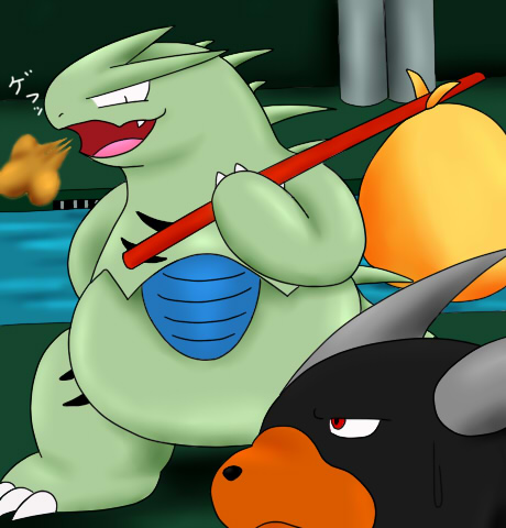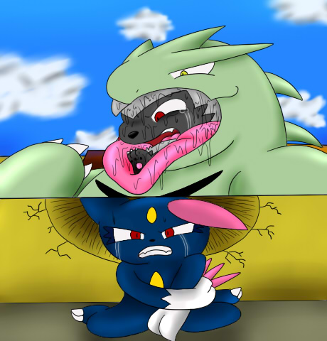 バン「で、次はどっちが食われたいんだ…!」腕でごしごしと拭きながらバンギラスはじろりと残りの二匹を見る。