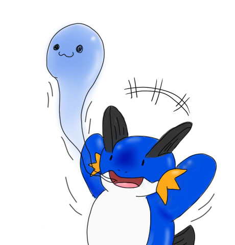 暑いのが我慢できなくて水ポケモンにすがるガーディの図、