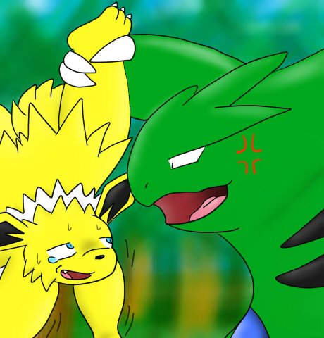 低く唸るような声でバンギラスがサンダースに話しかける、