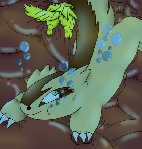 マッスグマはそばにある川で体中にこびりついたルギアの体液を落としていた。