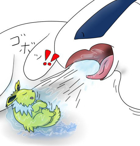 ルギアがお腹の中で暴れているポケモンをなだめるようにお腹をさする。