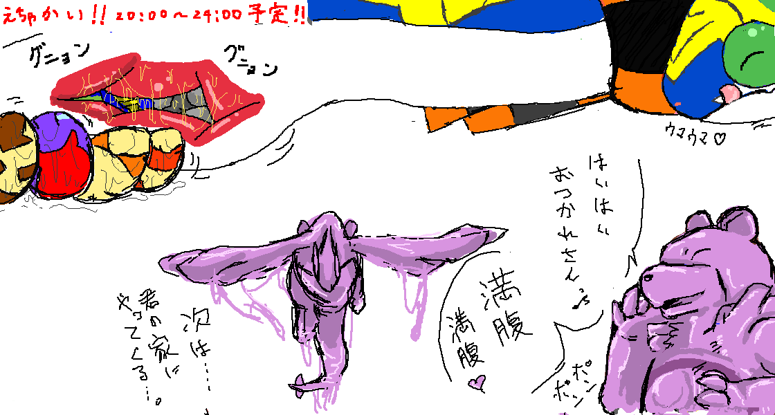 そのお腹の部分がぐにょんと大きく膨れ上がると、